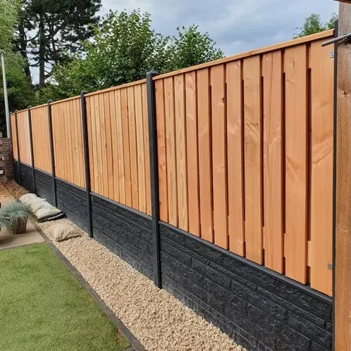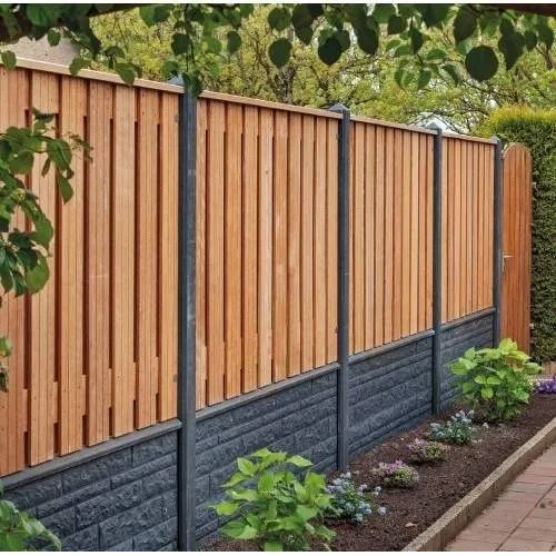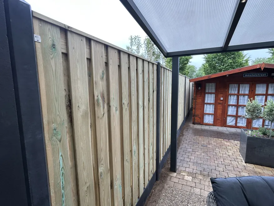 Een exclusieve schutting met betonnen palen en afdeklatten voor een hoogwaardige en stijlvolle tuinomheining.